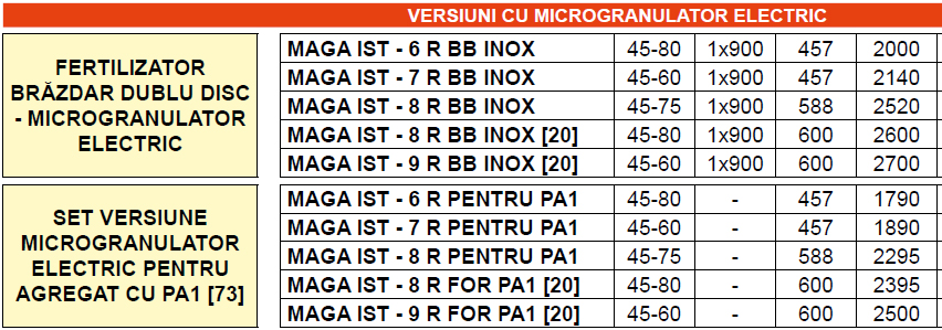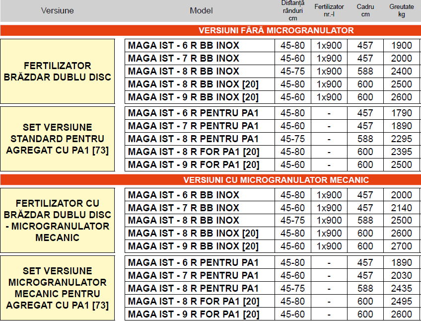 Versiuni cu fertilizator și micro echipate cu 2 scări fixe și 1 scară amovibilă