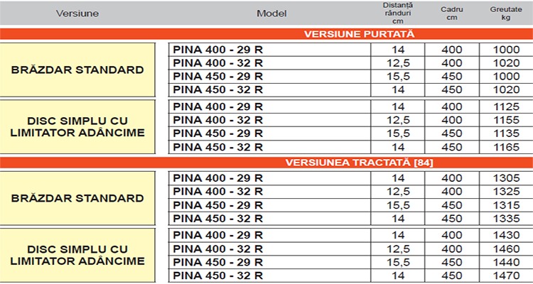 Limitator de adâncime a brăzdarului cu patină (fiecare rând)